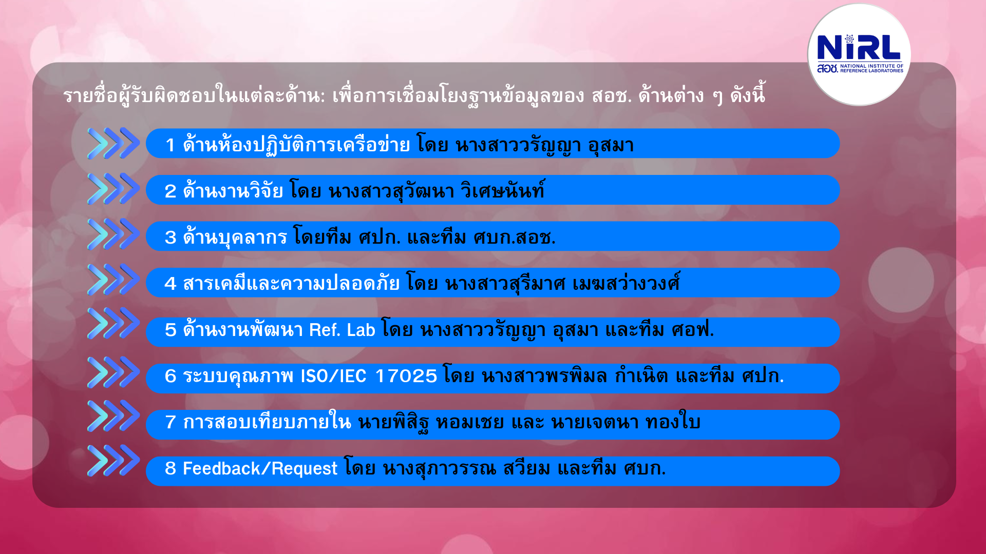 📃 คำสั่ง สอช. ที่ 1/2569 (วันที่ 6 ม.ค. 2569) : แต่งตั้งคณะทำงานบูรณาการและจัดการข้อมูลของสถาบันห้องปฏิบัติการอ้างอิงแห่งชาติ