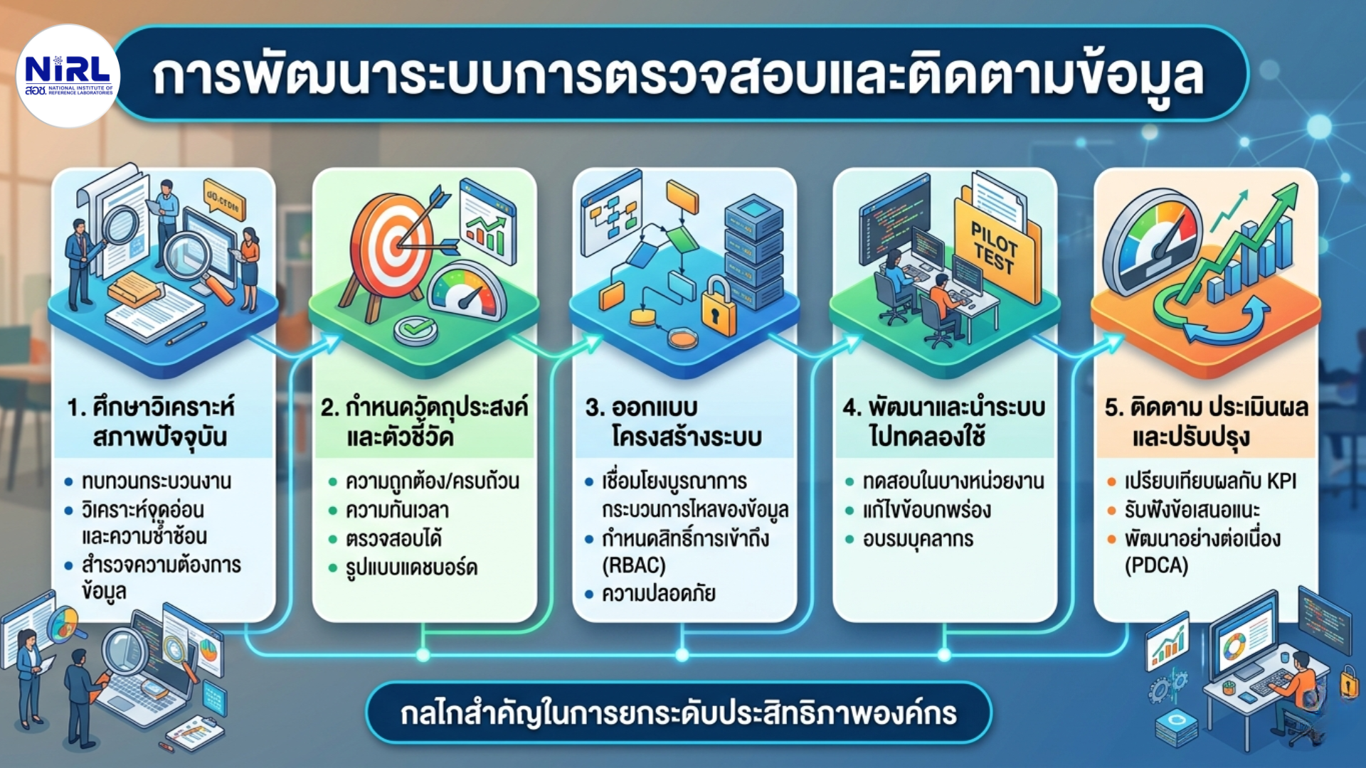 การพัฒนาระบบการตรวจสอบและติดตามข้อมูลเป็นกลไกสำคัญในการยกระดับประสิทธิภาพการบริหารจัดการองค์กร โดยเฉพาะในหน่วยงานที่มีภารกิจหลากหลายและเกี่ยวข้องกับการใช้ทรัพยากรจำนวนมาก ระบบดังกล่าวจะช่วยให้ผู้บริหารสามารถกำกับติดตามผลการดำเนินงานได้อย่างเป็นระบบ โปร่งใส และทันต่อสถานการณ์ ดังนั้น การพัฒนาระบบจึงควรดำเนินการอย่างเป็นขั้นตอนและมีกรอบแนวคิดที่ชัดเจน