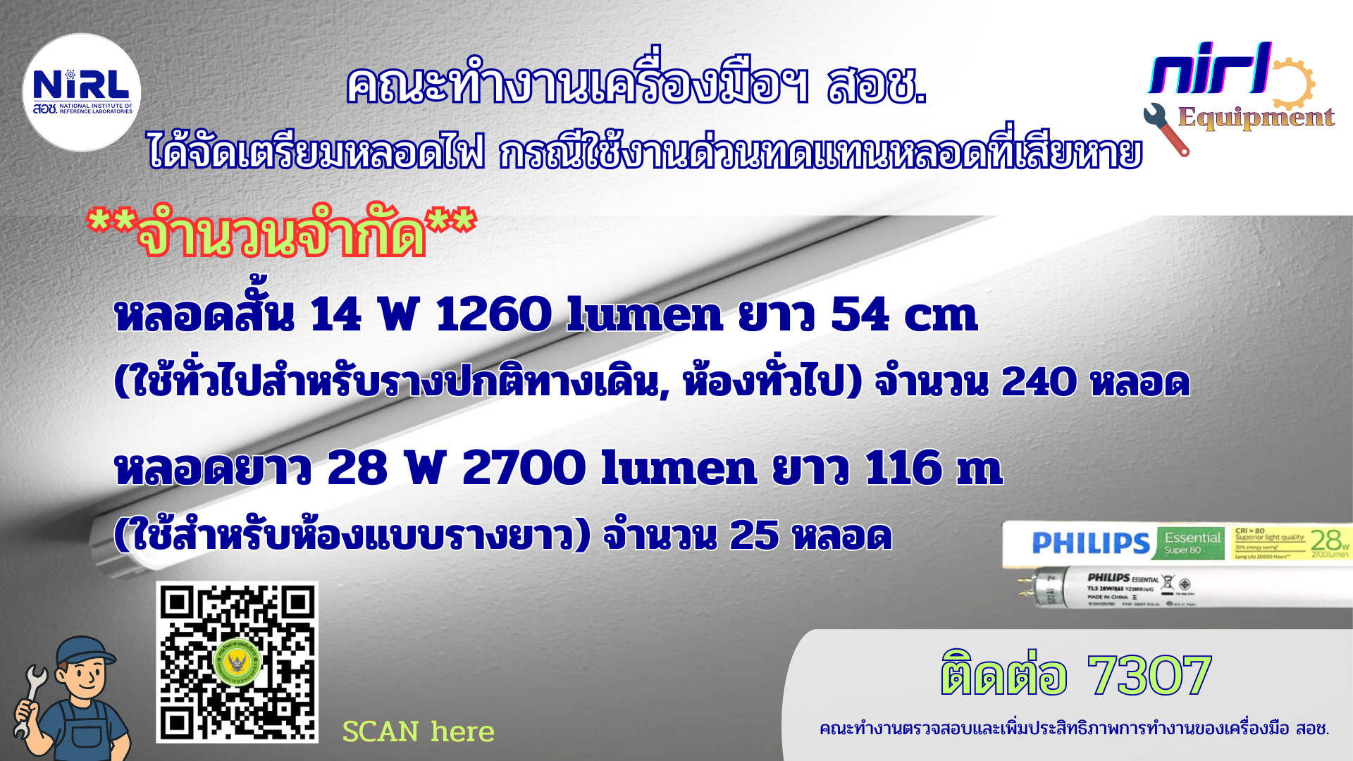 คณะทำงานตรวจสอบและเพิ่มประสิทธิภาพการทำงานของเครื่องมือ สอช. ได้จัดเตรียมหลอดไฟ กรณีใช้งานด่วนทดแทนหลอดที่เสียหาย/ชำรุด