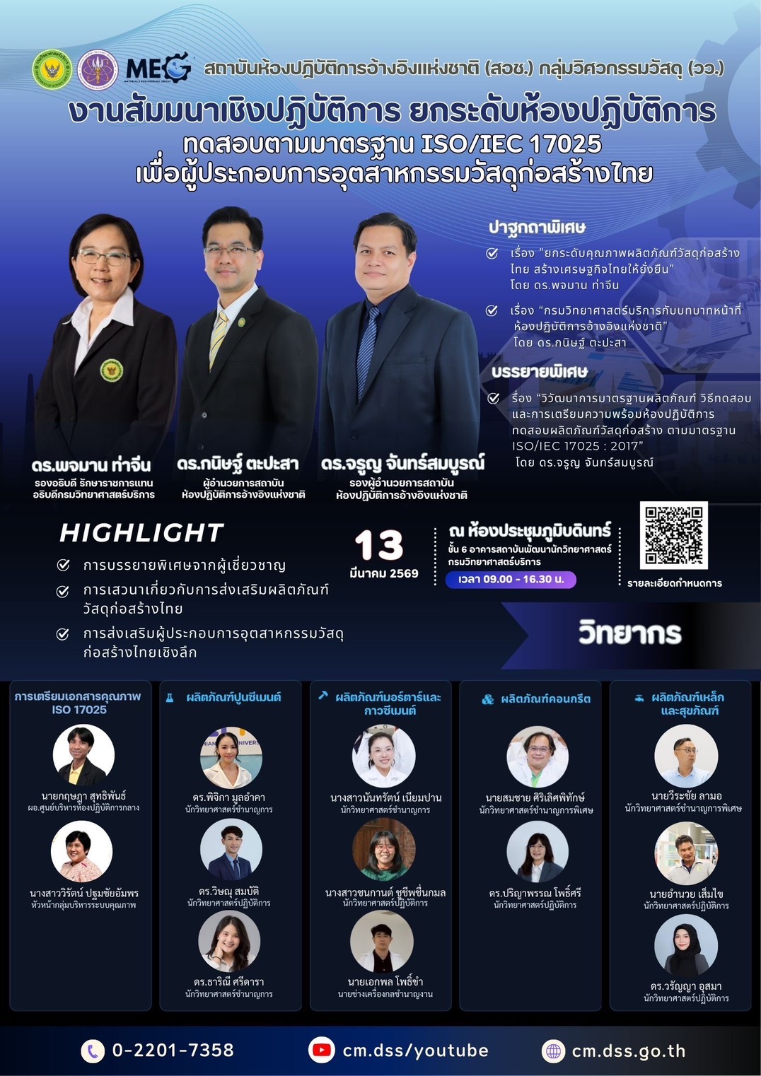 เรื่อง “ยกระดับห้องปฏิบัติการทดสอบตามมาตรฐาน ISO/IEC 17025 เพื่อผู้ประกอบการอุตสาหกรรมวัสดุก่อสร้างไทย”